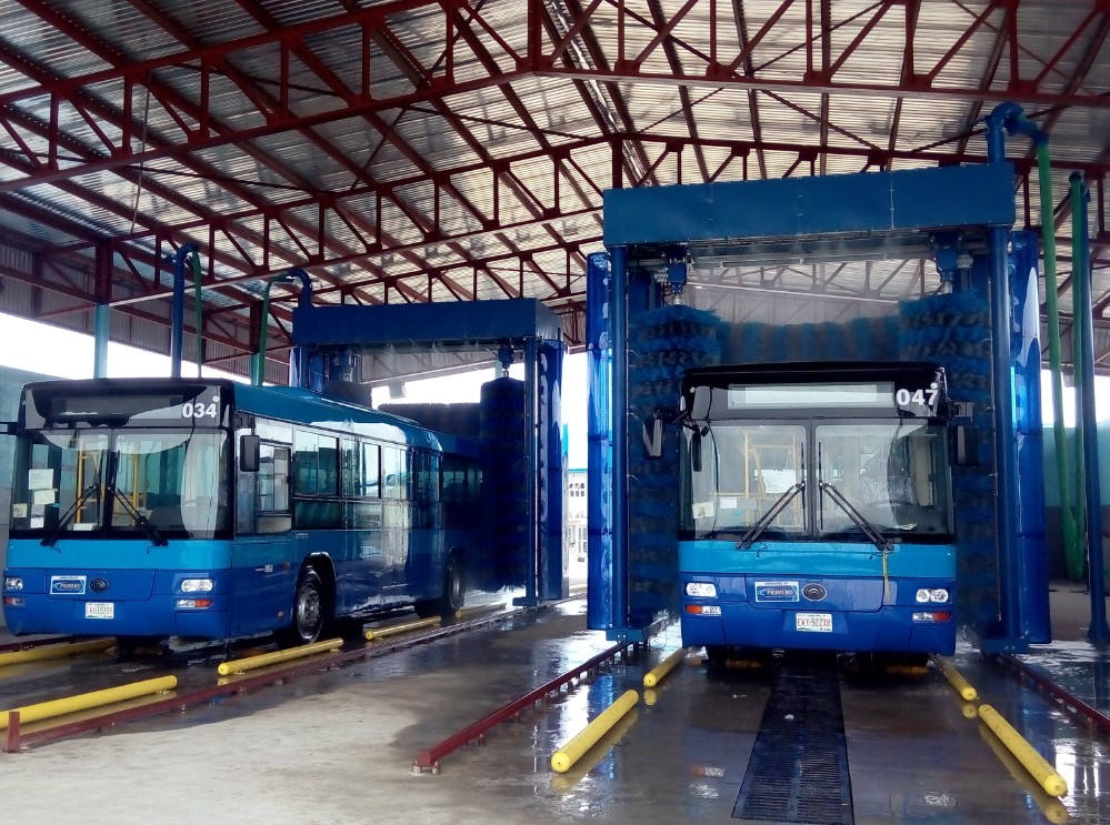 3.Bus roof, front, rear, both sides and chassis to wash.