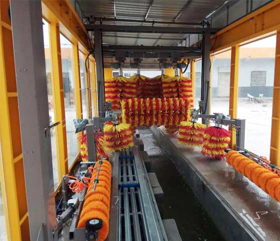 金龍隧道式洗車機,根據(jù)消費者的要求的不同,隧道式全自動洗車機共開發(fā)出了5支刷、7支刷、9支刷、11支刷、12支刷、14支刷6個型號,本產(chǎn)品采用了最實用化的設(shè)計理念:輸送機更矮、更寬,可適應(yīng)最新型車輛要求,輸送機的人性化設(shè)計,不會有積水和淤泥,便于清理,入口有車輪導(dǎo)正器,方便車輛駛?cè)耄徽麢C采用防腐框架加封玻璃,高端、大氣、上檔次,產(chǎn)品廣告效應(yīng)極佳