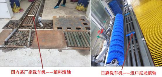隧道式洗車機(jī)輸送系統(tǒng)是能實(shí)現(xiàn)連續(xù)洗車的重要機(jī)構(gòu),看似簡(jiǎn)單的滾輪卻起著舉足輕重的作用,普通滾輪選用塑料材質(zhì),耐磨性差,而日森選用進(jìn)口尼龍輪,帶動(dòng)性好,耐磨性更好。